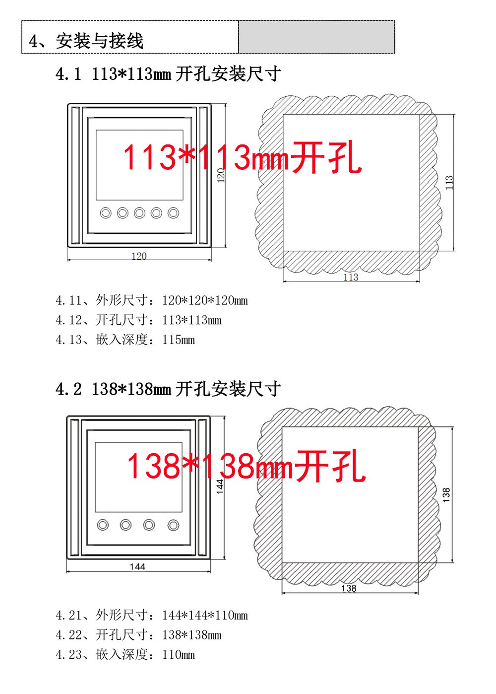开孔尺寸:1、113*113mm