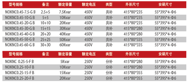 随着徴电子技术、数字控制技术、通信与网络技术的高速发展和广泛应用,管能电器得到了长足的发展。智能化、集成化、网络化、高可集性、可用性、可维护性、环保、安全成为智能电器发展的主流。 NOKNC系列智能集成电力电容器正是在智能电器患体发展框架上开发出来的全新一代低压无功补偿装置。是0.4kV低压配电网高效书能、降低线损、提高功率因数和电能质量的新一代无功补偿设备。它由智能测控単元过零投切开关电路, 线路保护単元,低压电力电容器构成,产品为上下分体式模块化结构,上面由智能测控、开关、保护等単元组成,下面由两台(△型)或一台(Y型)低压电力电容器构成。产品分为共补、分补两种,既可单台使用,也可多台组网构成补偿系统使用,可方使地实现就地、分散、集中自动补偿功能,还能满足三相不平衡场合的混合补偿要求。