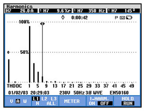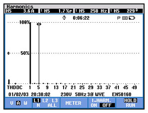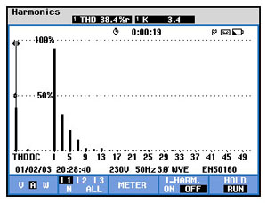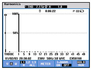 据客户方反映,低压配电系统中电容柜经常出现烧毁现象,前期与客户沟通得知:宾馆由于使用变频器较多,怀疑电容柜损坏是由谐波造成,遂委托我公司对其低压配电系统电能质量情况进行测量。我们的技术人员于2009年12月31日对宾馆电力变压器低压侧谐波情况进行测量,对现场电能情况做出了详细的分析,并提出了相应的治理方案。