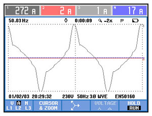 投入有源电力滤波器后,谐波电压、谐波电流治理效果: