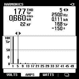 从以上数据可知,有源电力滤波器投入前,变频器相电流从补偿前的660A下降至626A,较滤波器投入前下降了5%;5次谐波电流从补偿前的111A下降至补偿后的13A,较之前下降了88%,由此可见,有源电力滤波器的投入达到了良好的消谐节能效果。